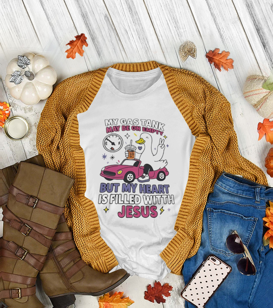 The My Gas Tank May Be On Empty But My Heart Is Filled With Jesus Duck Car Boba Tea T-shirt is designed for everyday wear and a consistent fit. Fabric is pre-shrunk ring-spun cotton with durable stitching. See the size chart below for exact measurements.