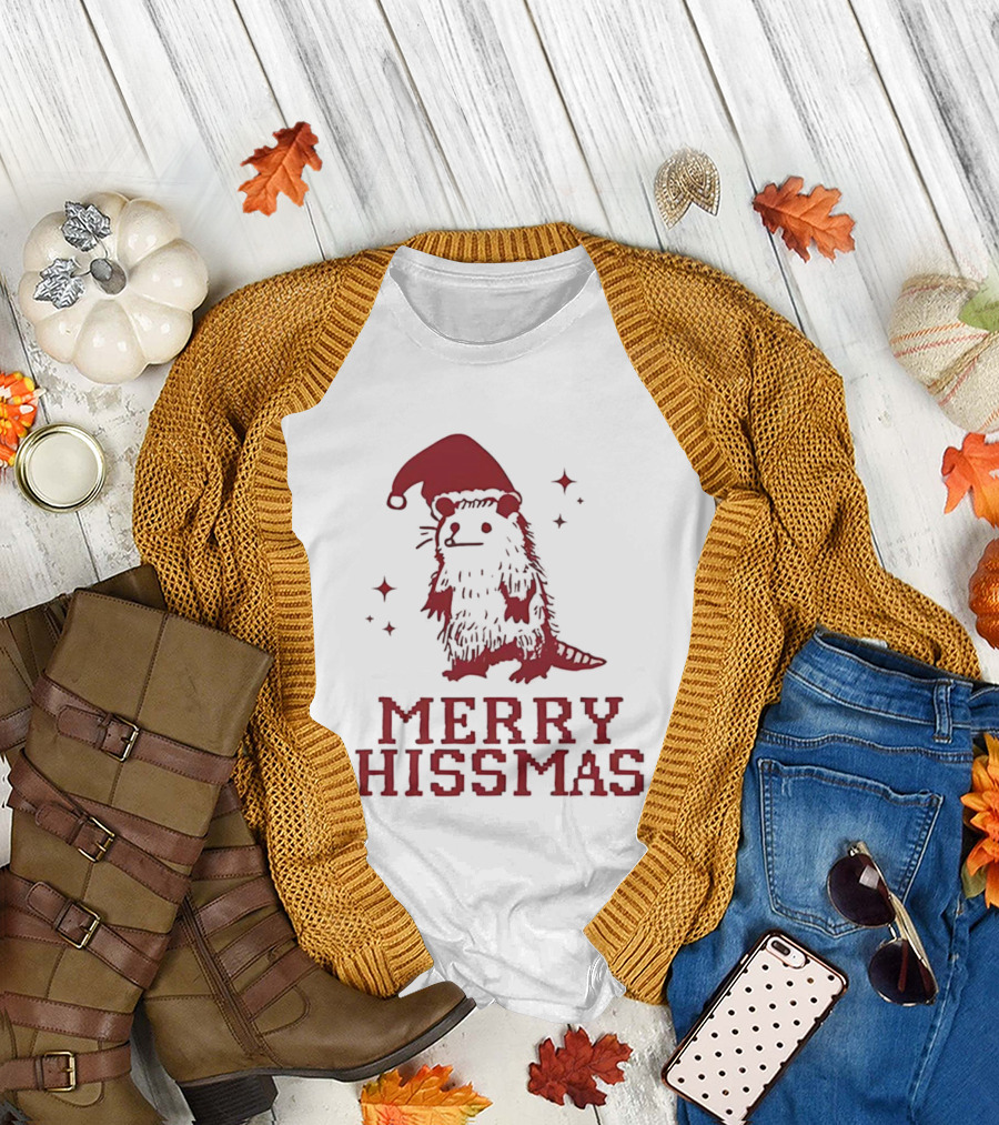 Merry Hissmas Opossum With Santa Hat Christmas Holiday Humor T-Shirt