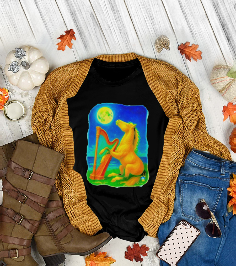 Magical Moonlit Horse Harp Player Fantasy Scene For Horse Lovers T-Shirt