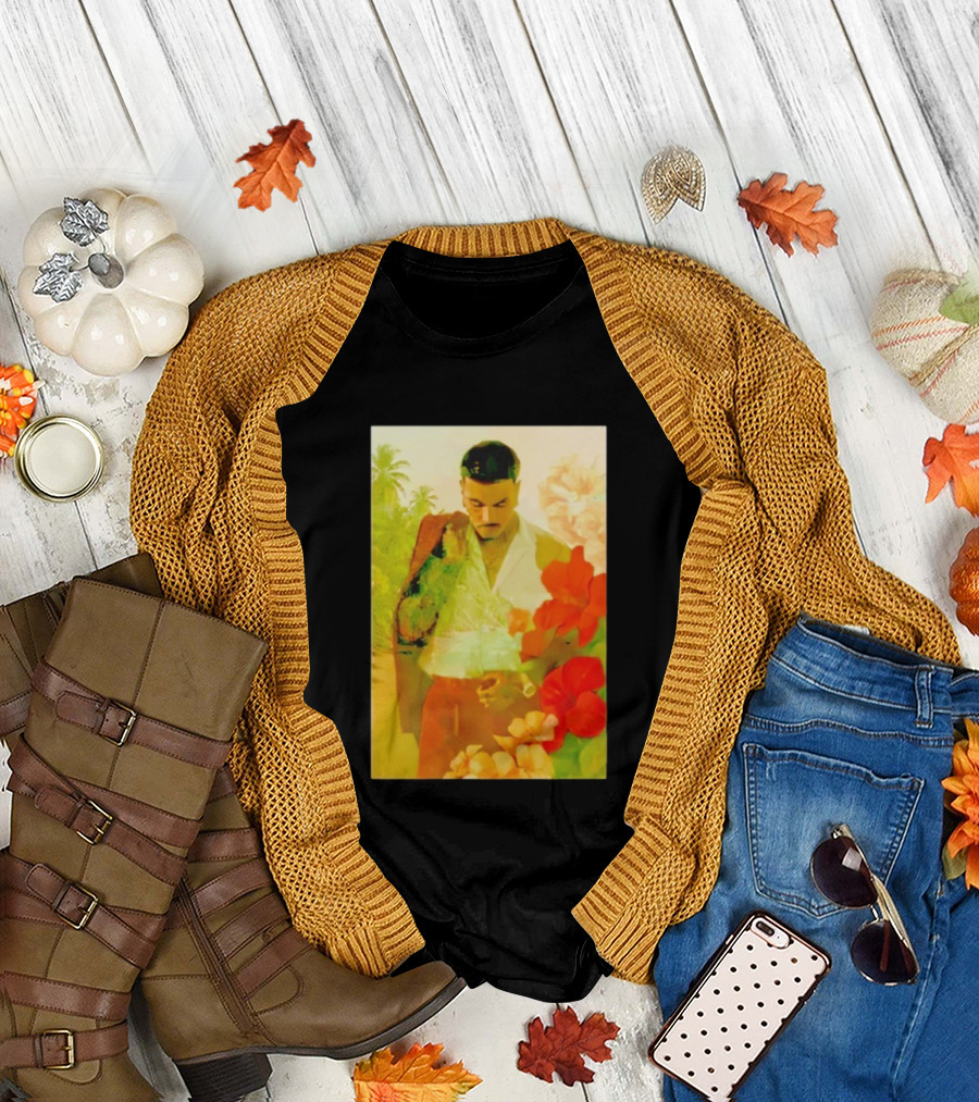Rauw Alejandro Tropical Floral Portrait With Suit And Flowers T-Shirt