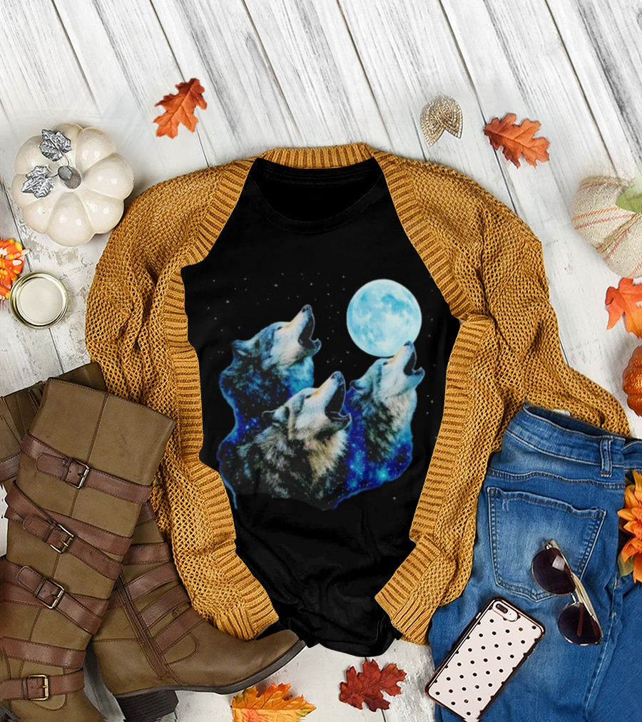 The Three Wolves Howling at Cyan Moon Cosmic Night Glow T-shirt is designed for everyday wear and a consistent fit. Fabric is pre-shrunk ring-spun cotton with durable stitching. See the size chart below for exact measurements.