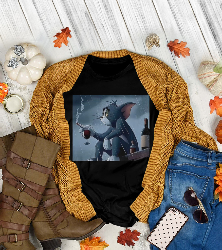 Tom Pensive And Sad Smoking In The Rain With Wine And Bottles T-Shirt