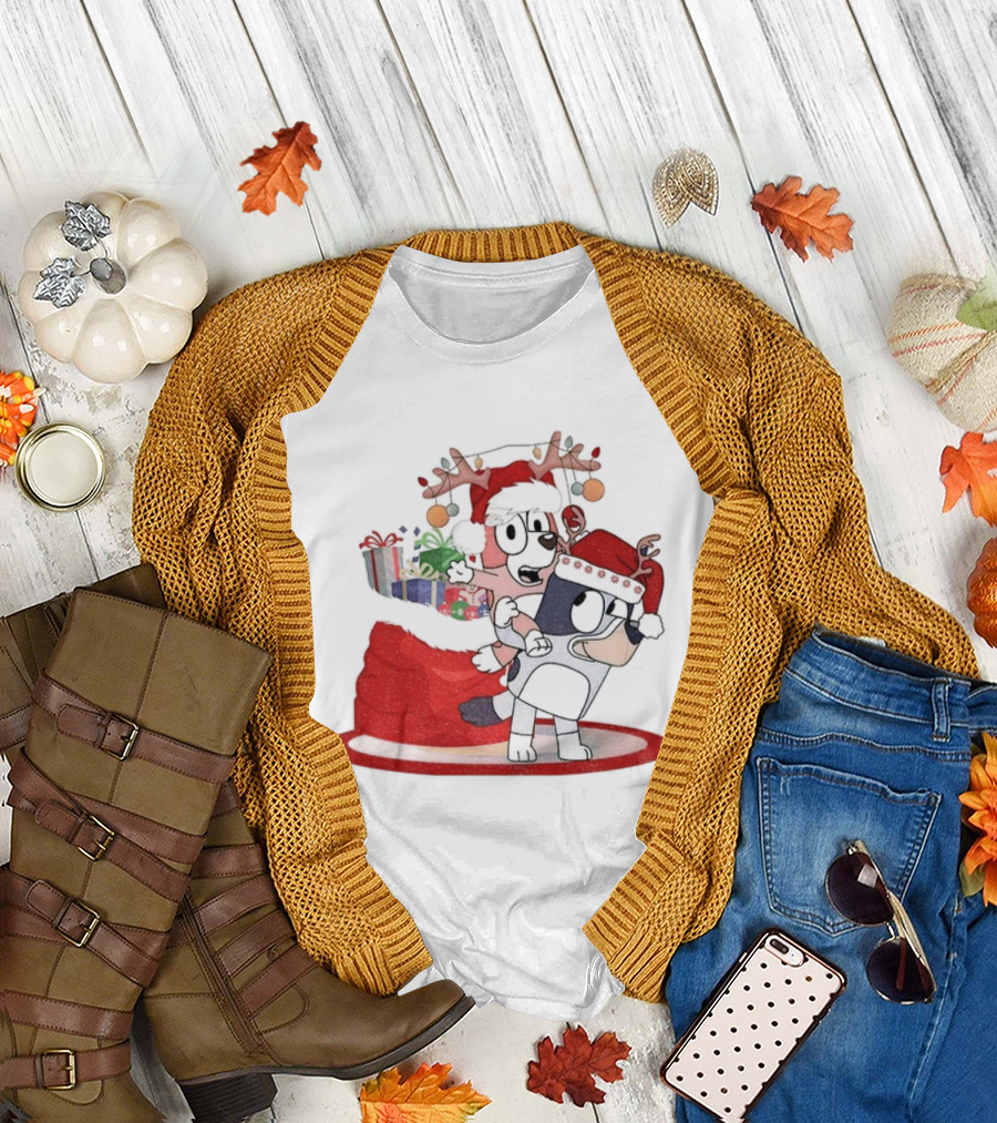 Bluey And Bingo Reindeer Santa Hat Merry Christmas Festive Celebration T-Shirt