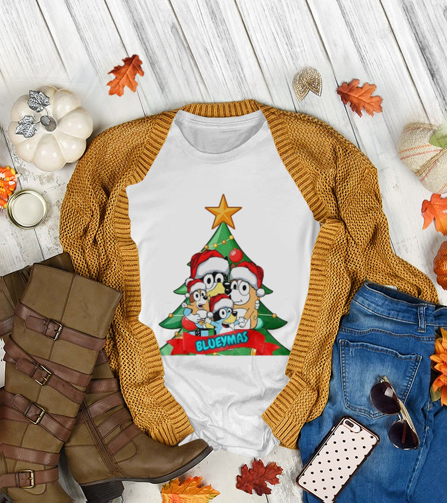 Bluey Family Christmas Tree Blueymas Merry Christmas Santa Hats T-Shirt