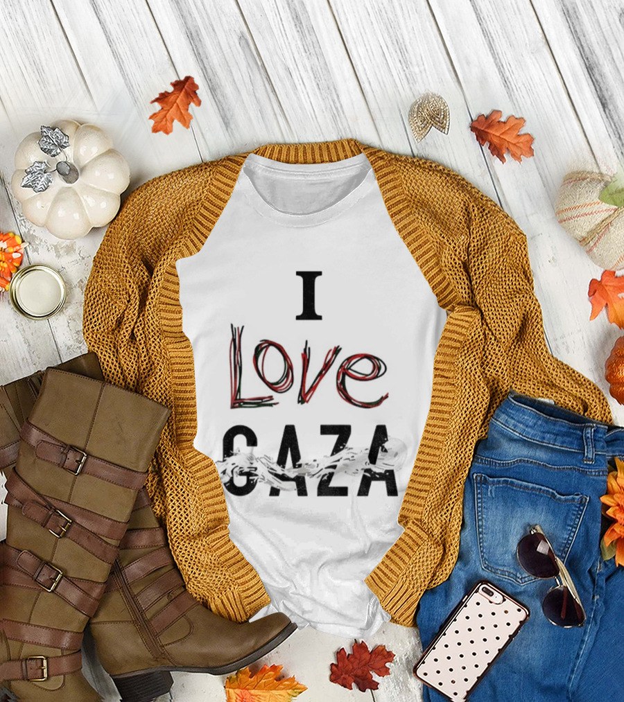 The I Love Gaza Vintage Style Text T-shirt is designed for everyday wear and a consistent fit. Fabric is pre-shrunk ring-spun cotton with durable stitching. See the size chart below for exact measurements.