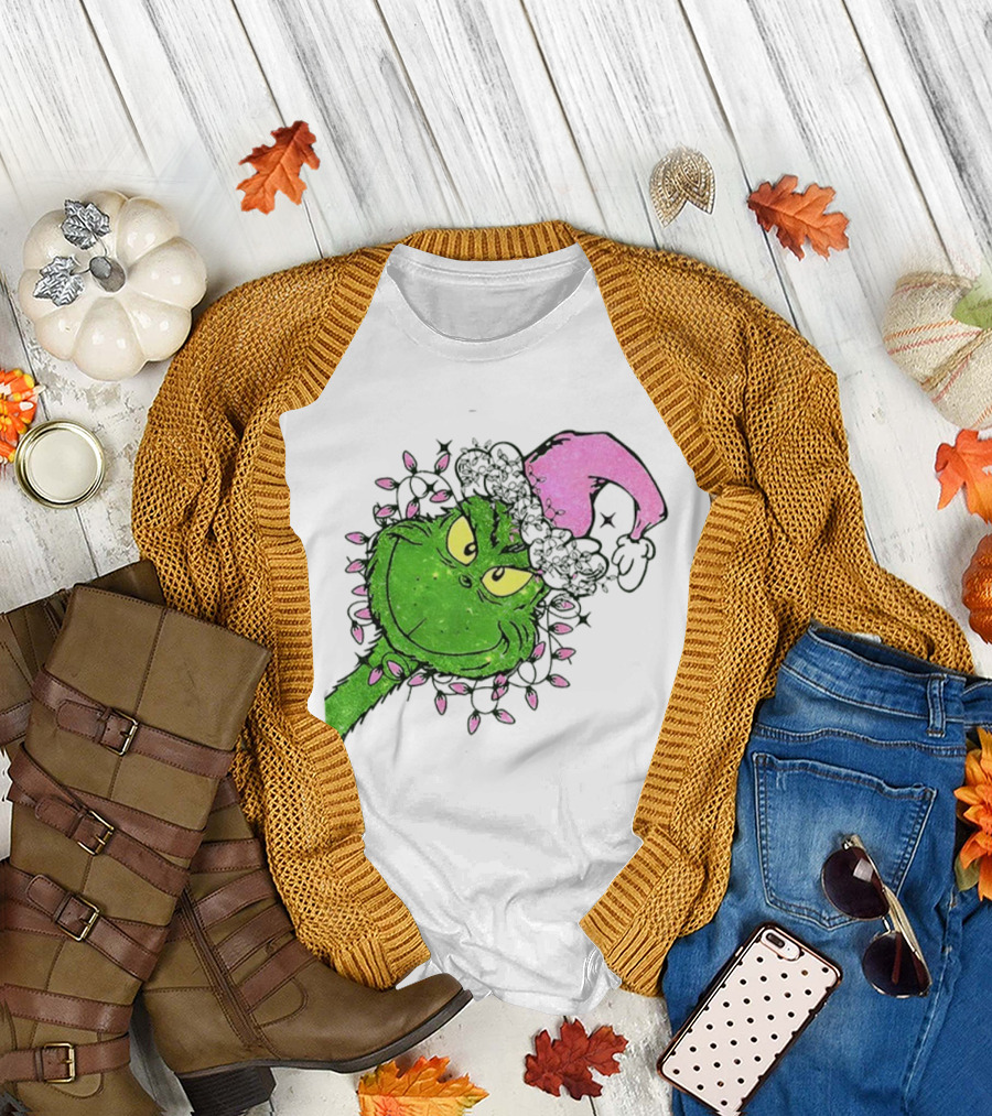 Pink Santa Grinch Feeling Extra Grinchy Today Christmas Lights T-Shirt