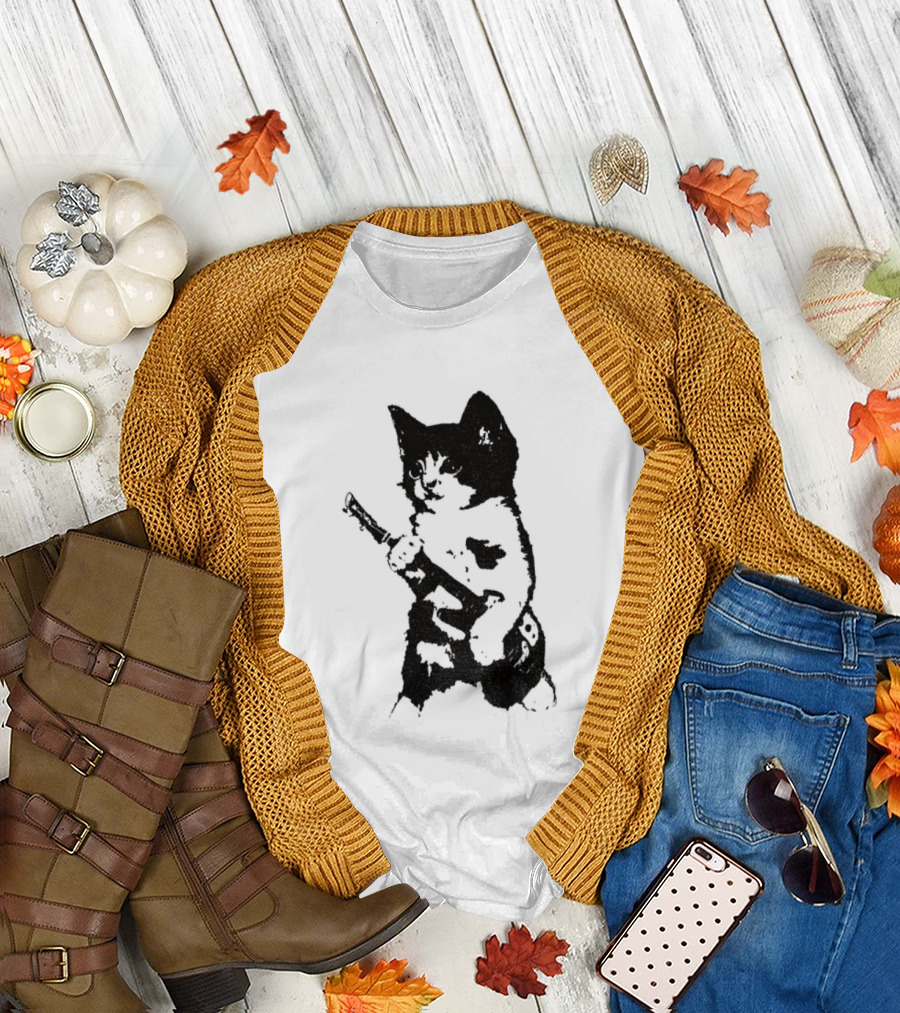 Rockstar Kitten Vintage Gun Holder Retro Style T-Shirt
