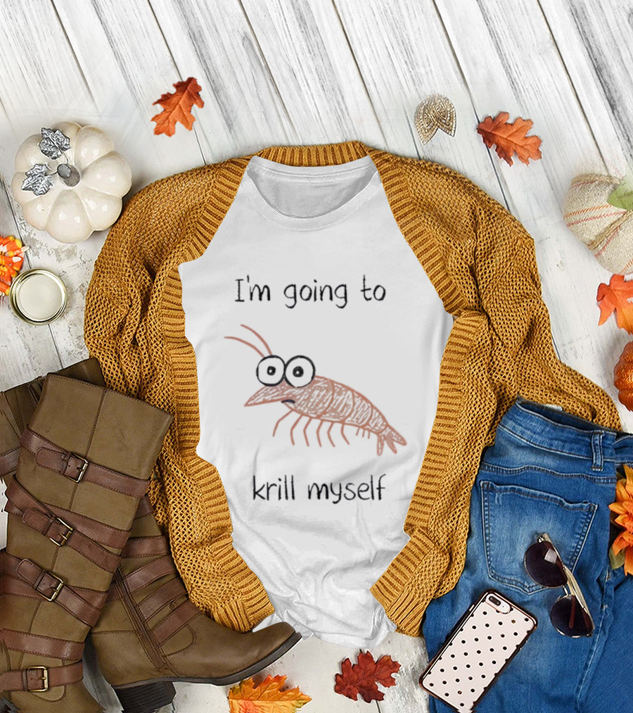 Shrimp I'm Going To Krill Myself Funny Pun Text T-Shirt