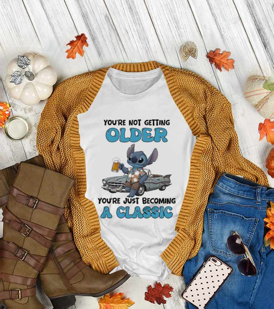 How much will this Stitch You're Not Getting Older You're Just Becoming A Classic Popsicle Outfit shirt shrink?