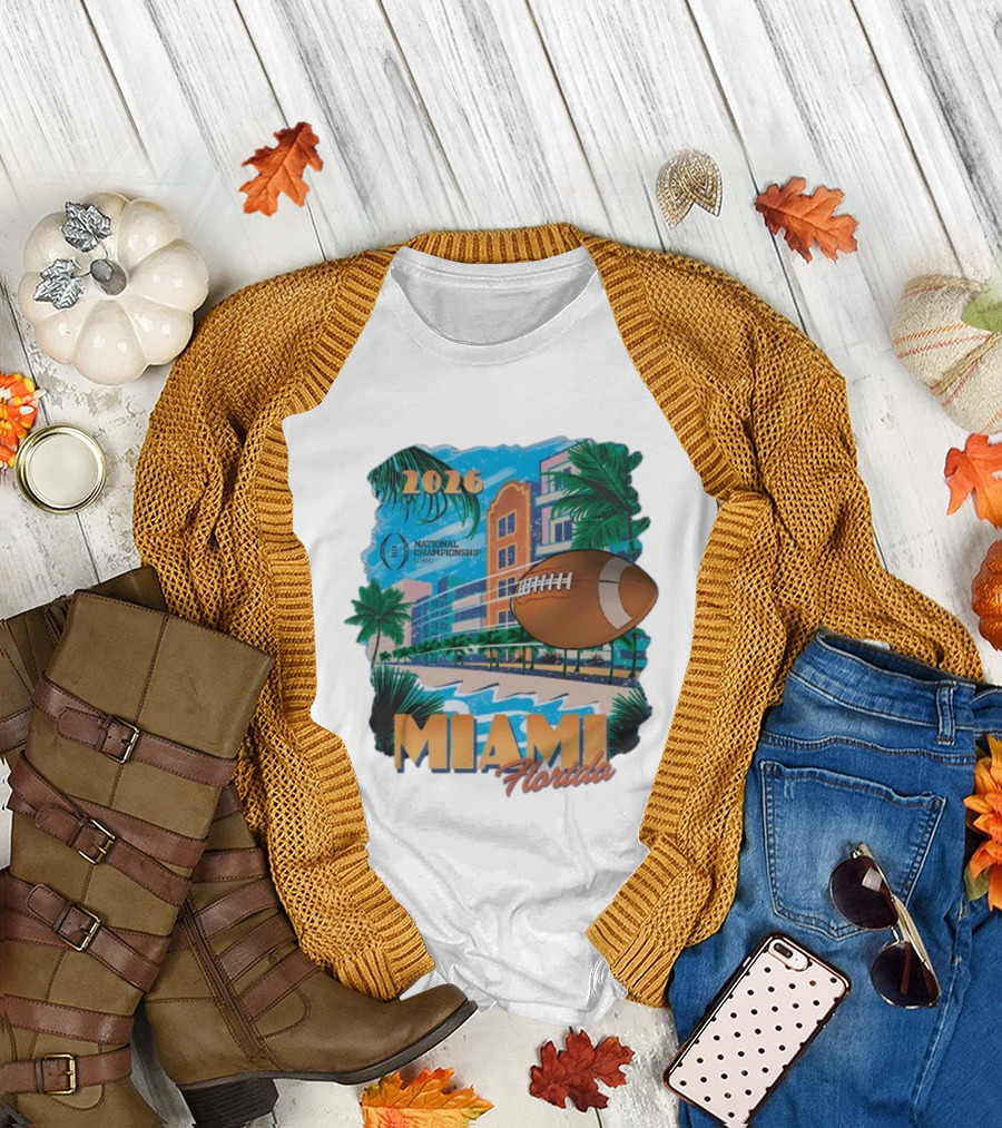 College Football Playoff National Championship 2026 Miami Florida Scenic Palm Trees Football T-Shirt