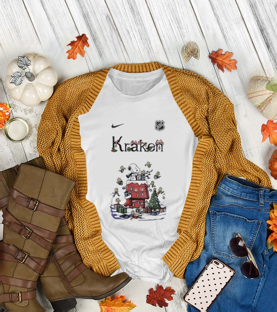Nike Snoopy Christmas Seattle Kraken Peanuts Holiday Collaboration T-Shirt