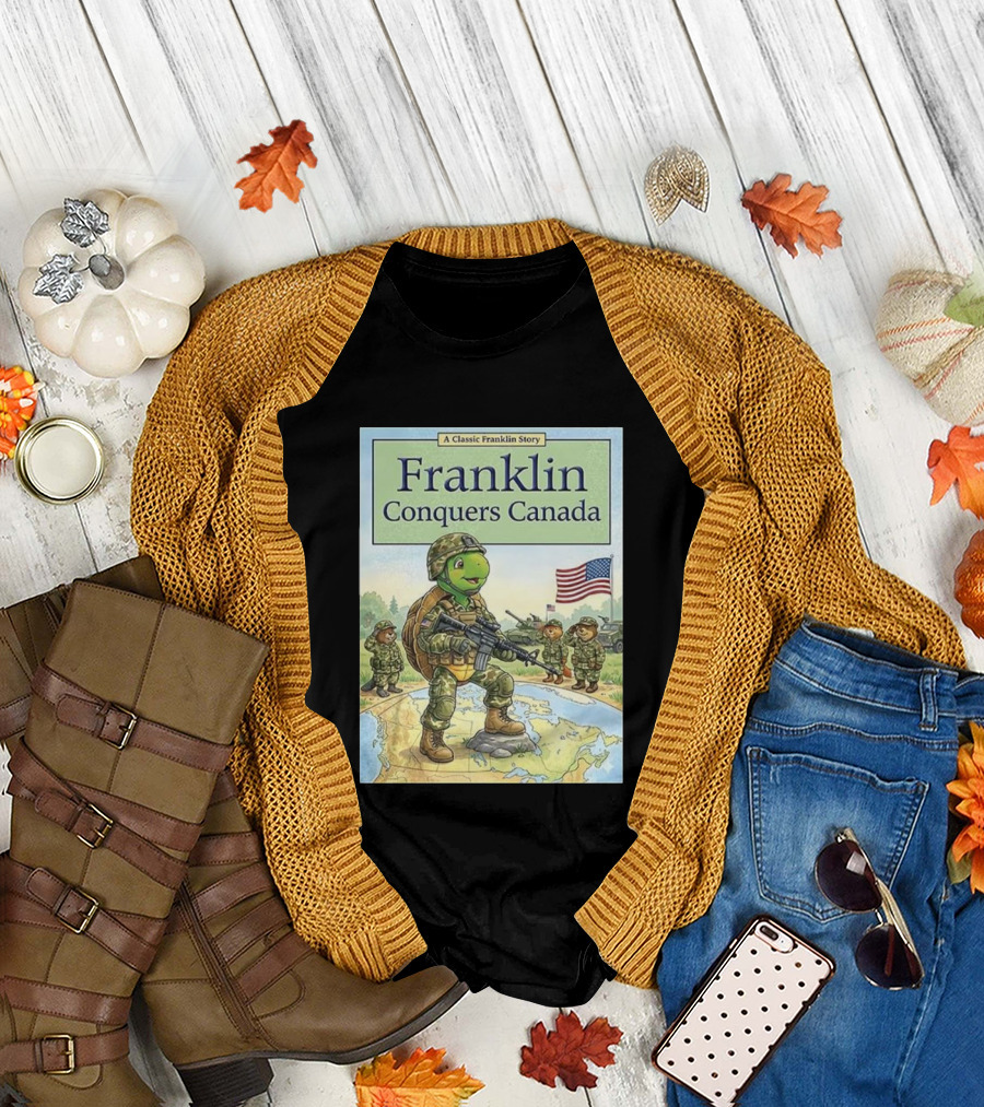 A Classic Franklin Story Franklin Conquers Canada American Flag Soldier Turtle T-Shirt