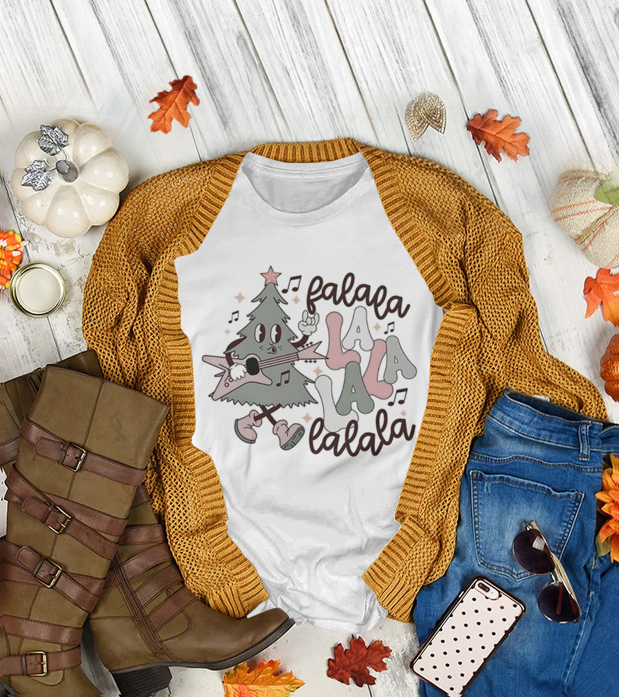 Christmas Tree Playing Electric Guitar Falala La La La Lalala Fun Holiday Music T-Shirt