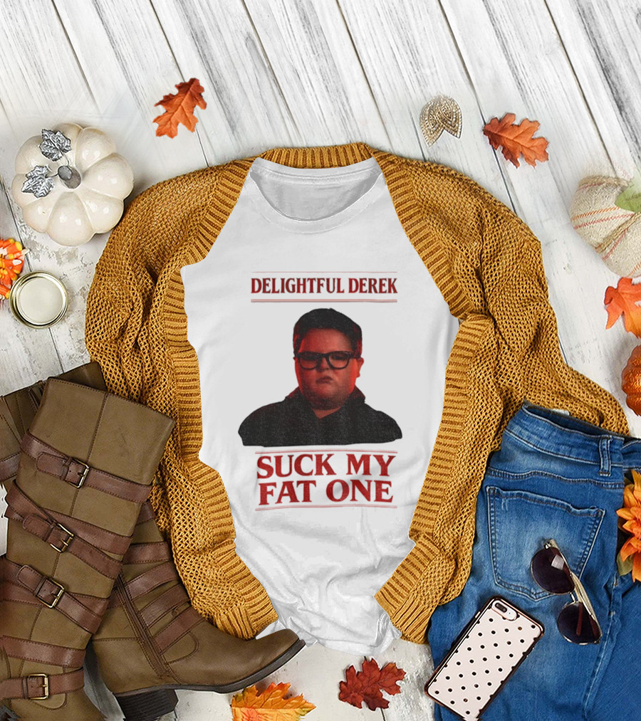 The Delightful Derek Stranger Things Suck My Fat One Christmas T-shirt is designed for everyday wear and a consistent fit. Fabric is pre-shrunk ring-spun cotton with durable stitching. See the size chart below for exact measurements.