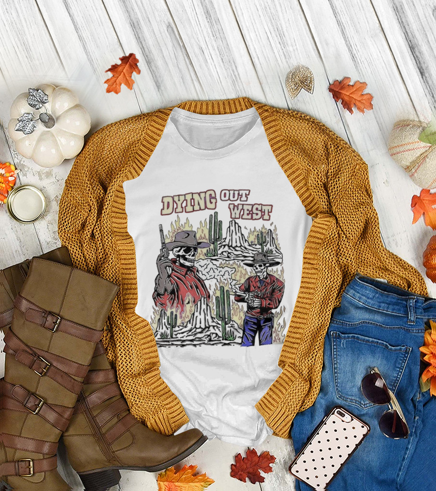 Dying Out West Cowboy Skeleton Cactus Flames Scenic T-Shirt