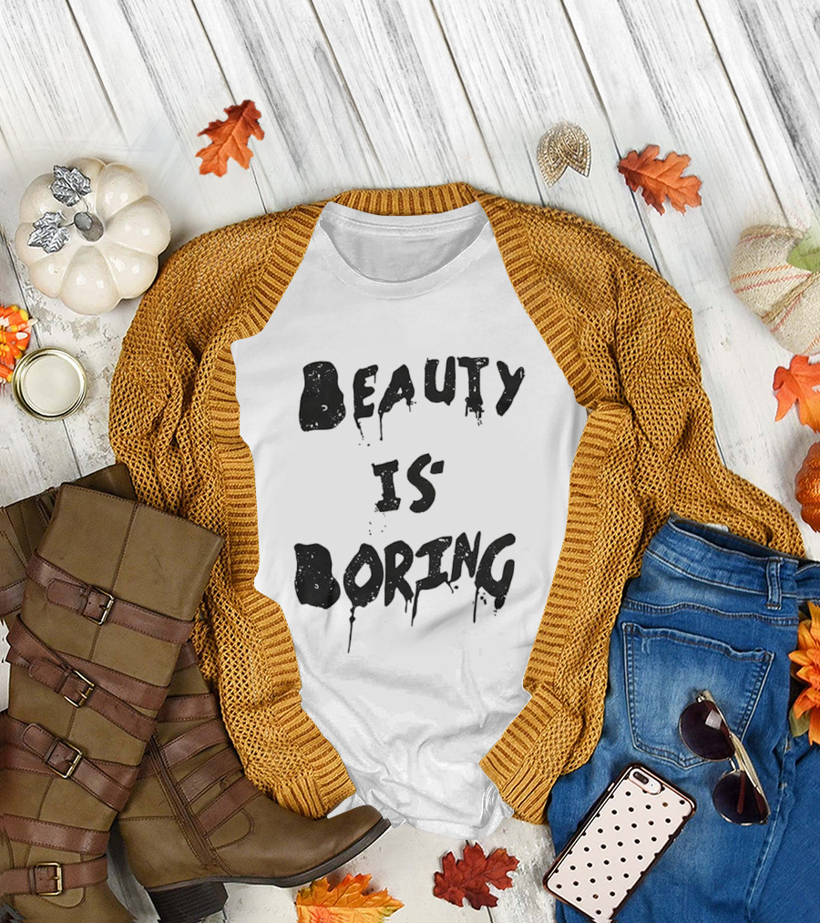 The Beauty Is Boring Jenko T-shirt is designed for everyday wear and a consistent fit. Fabric is pre-shrunk ring-spun cotton with durable stitching. See the size chart below for exact measurements.