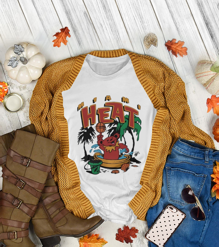 Grateful Dead Bear Miami Heat Basketball Palm Trees Beach Theme T-Shirt