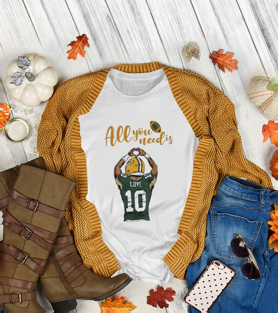 All You Need Is Love Packers Jordan Love 10 Green Bay Packers Football T-Shirt