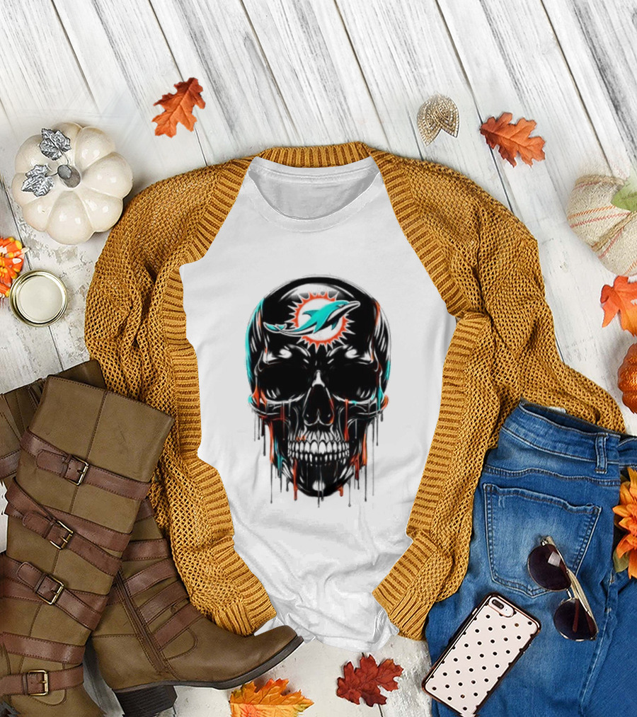 Miami Dolphins Skull Black Art Football Team Skull Fusion T-Shirt