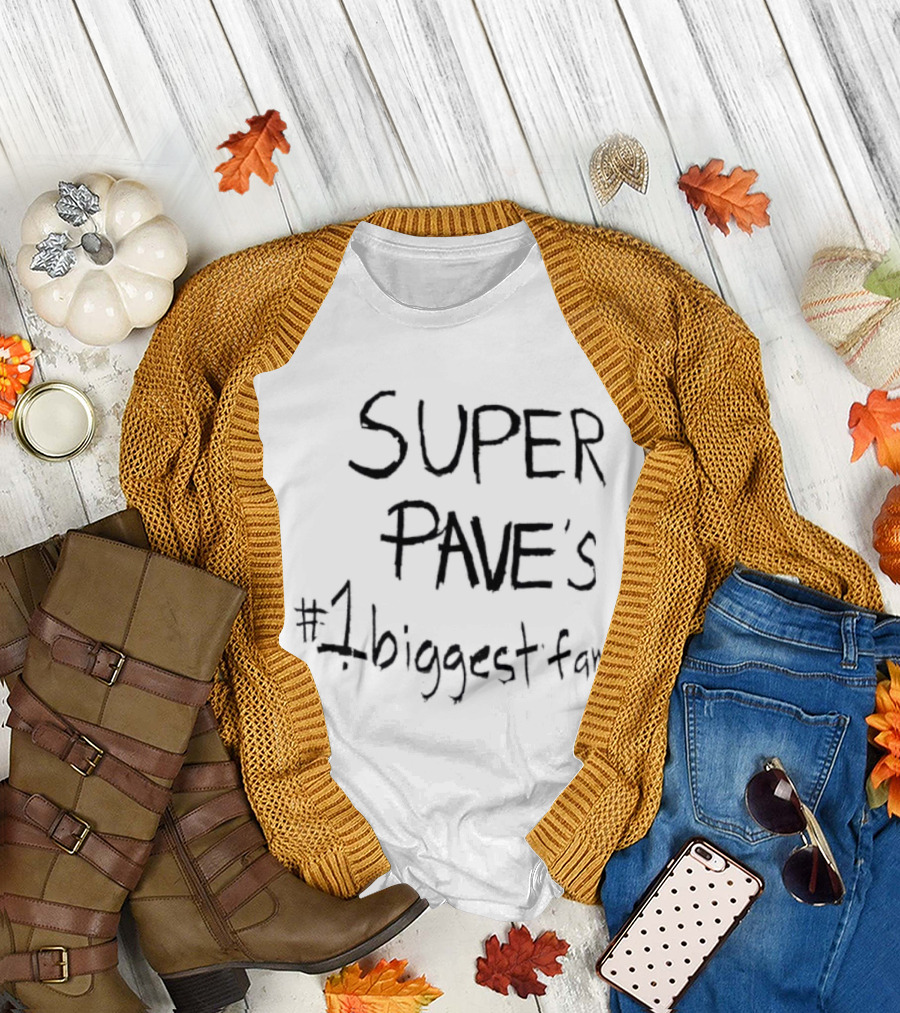 The Super Pave's Number One Biggest Fan Handwritten Style T-shirt is designed for everyday wear and a consistent fit. Fabric is pre-shrunk ring-spun cotton with durable stitching. See the size chart below for exact measurements.