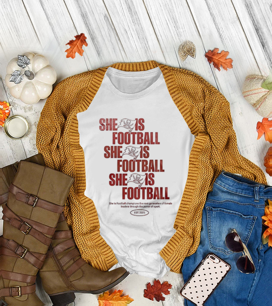 Tampa Bay Buccaneers She Is Football Repeating Text T-Shirt