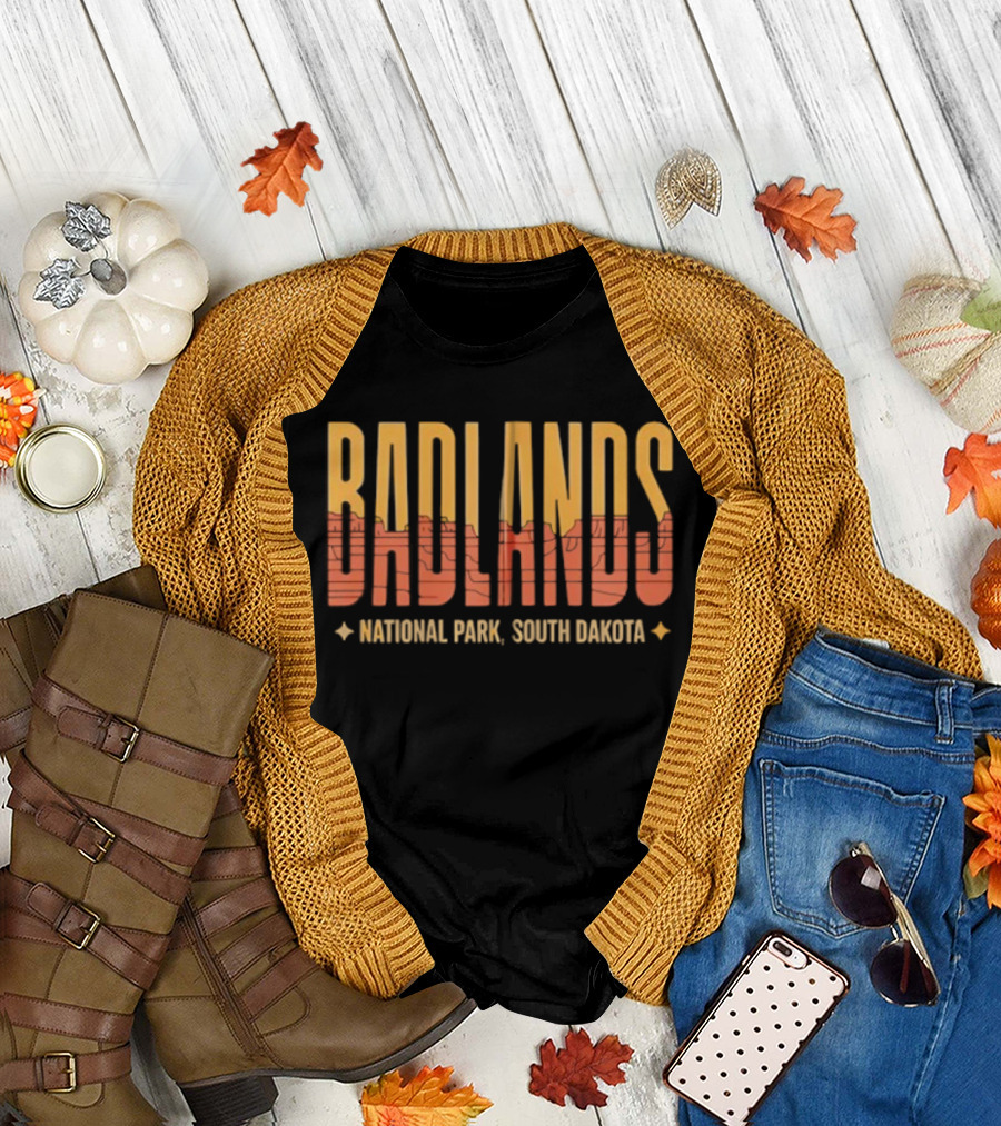 The Badlands National Park South Dakota Retro Vintage Aesthetic T-shirt is designed for everyday wear and a consistent fit. Fabric is pre-shrunk ring-spun cotton with durable stitching. See the size chart below for exact measurements.
