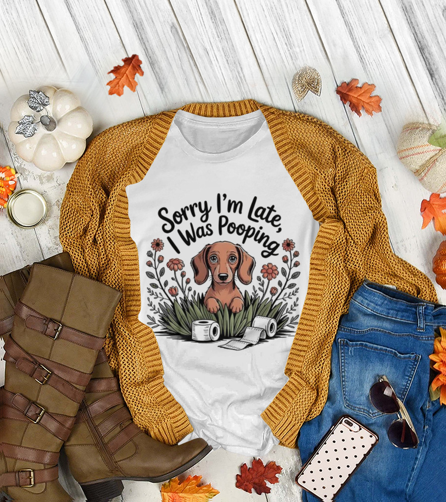 Sorry I’m Late I Was Pooping Dog Flowers And Grass T-Shirt