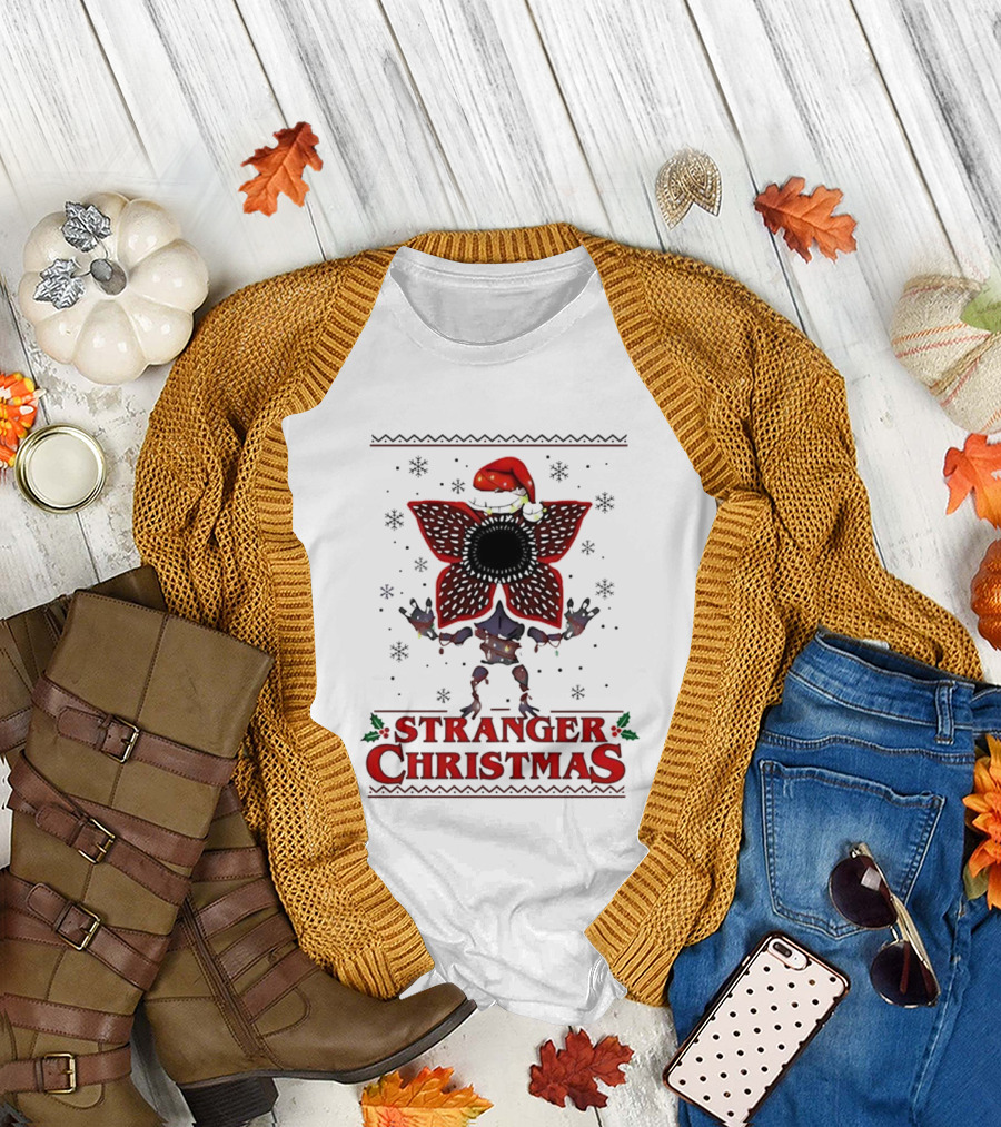 Stranger Things Christmas Demogorgon Santa Hat Merry Upside Down Ugly Sweater T-Shirt