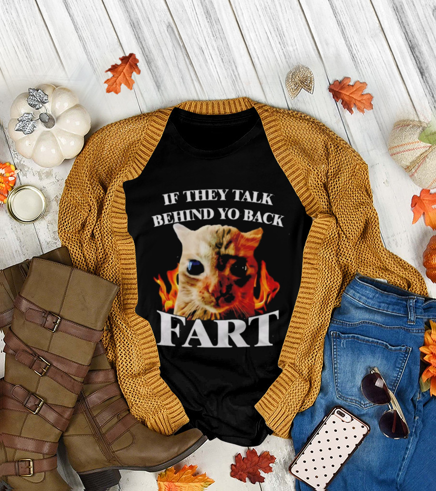 If They Talk Behind Yo Back Fart Cat Meme Fire Background T-Shirt
