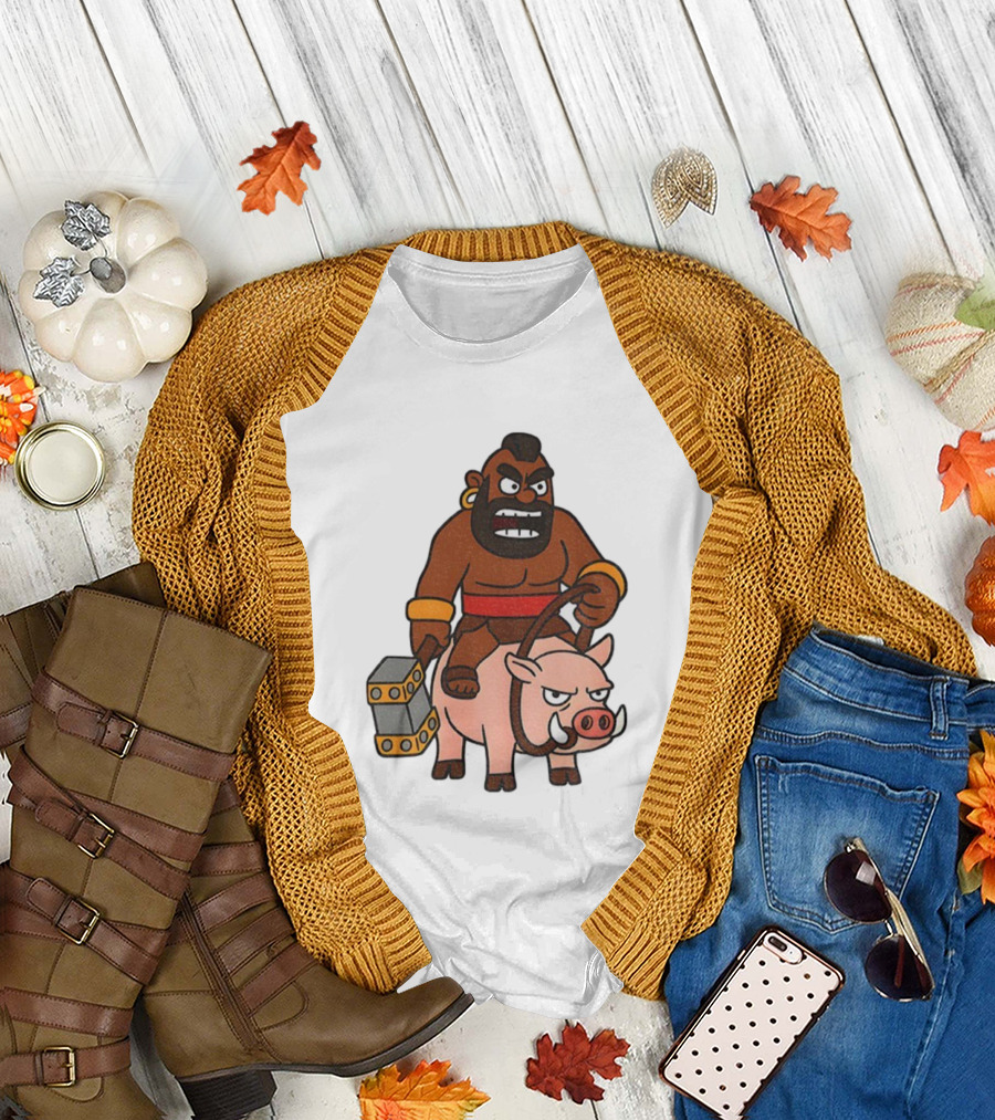 The Hog Rider Character from Clash Royale Game T-shirt is designed for everyday wear and a consistent fit. Fabric is pre-shrunk ring-spun cotton with durable stitching. See the size chart below for exact measurements.