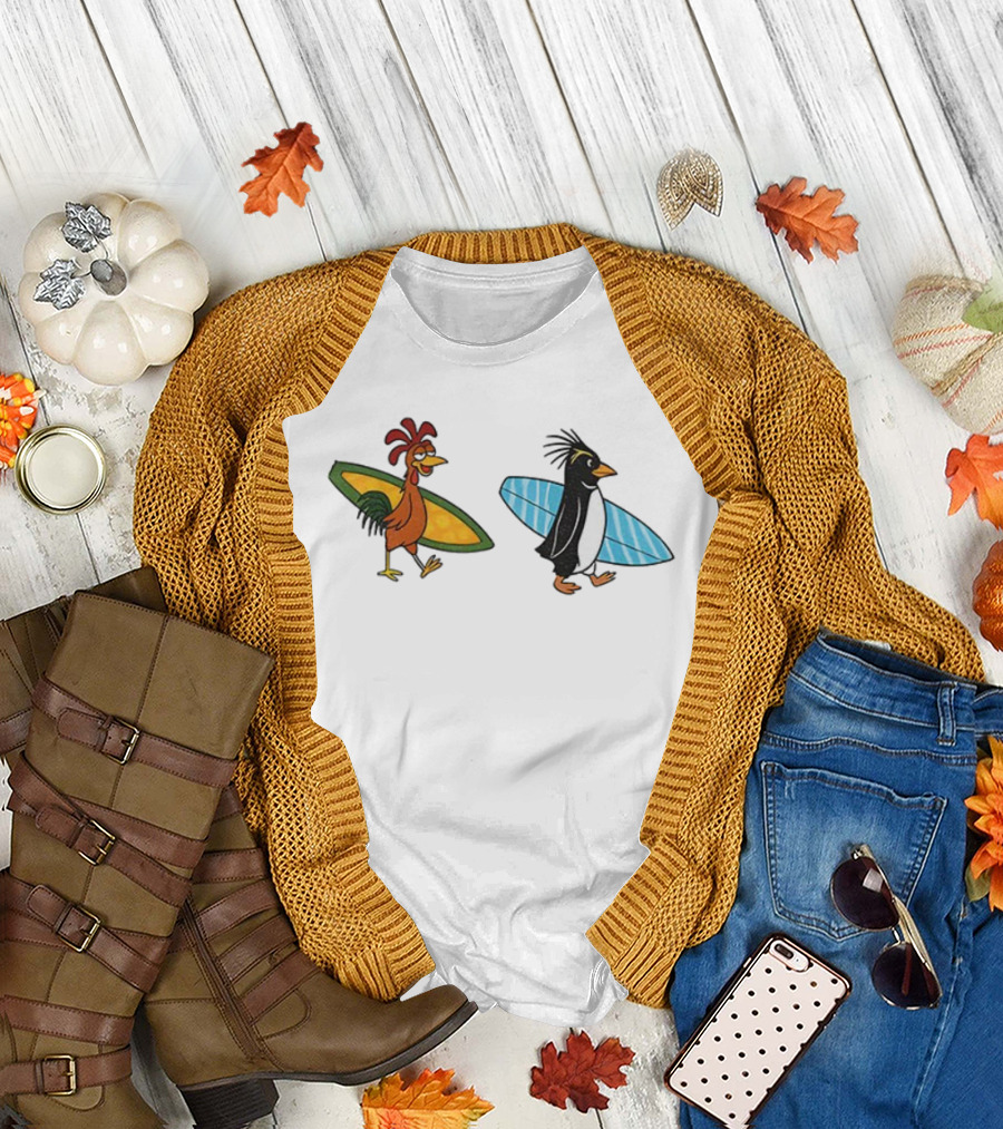 Joe And Cody Surfing Chicken And Penguin Adventure T-Shirt
