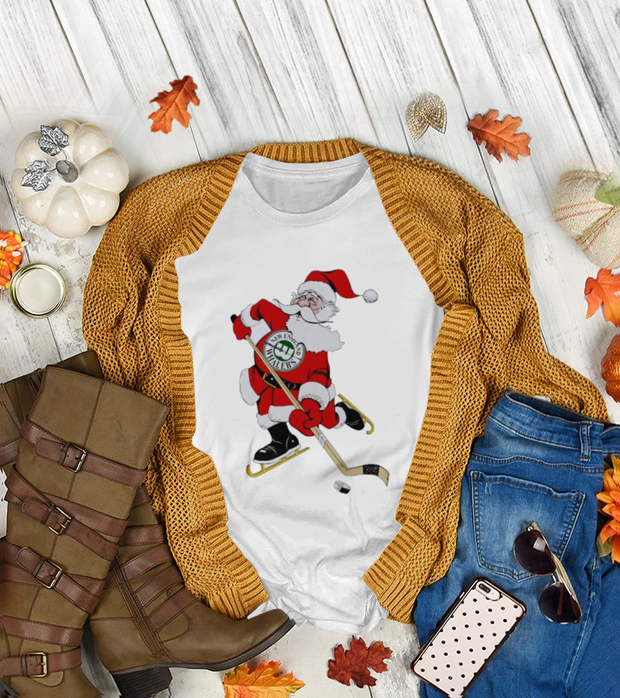 New England Whalers Santa Christmas Hockey Skating Holiday T-Shirt