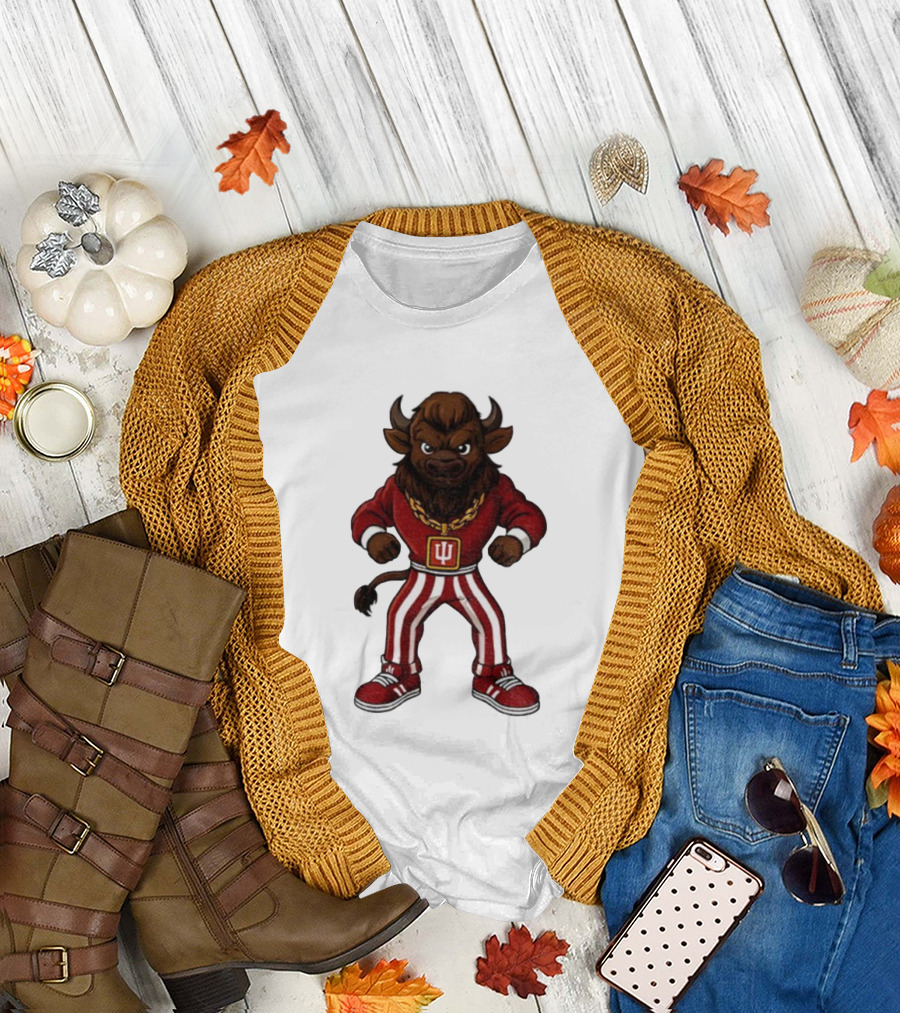 Indiana Hoosiers Buffalo Mascot Striped Pants Red Outfit T-Shirt