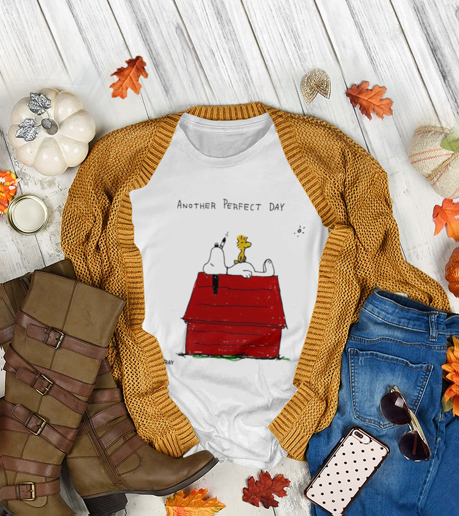 Snoopy And Woodstock Relaxing On Doghouse Perfect Day T-Shirt