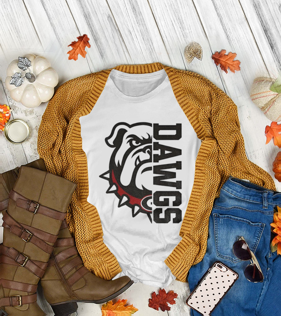 The Georgia Bulldogs Dawgs Split Bulldog Graphic T-shirt is designed for everyday wear and a consistent fit. Fabric is pre-shrunk ring-spun cotton with durable stitching. See the size chart below for exact measurements.