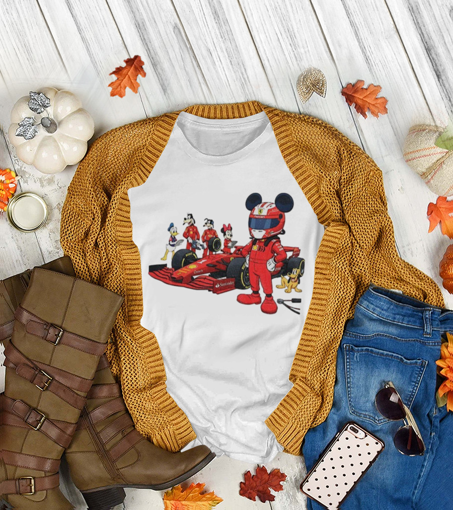 Ferrari Racing Disney Mickey Minnie Donald Goofy Pluto F1 Christmas T-Shirt