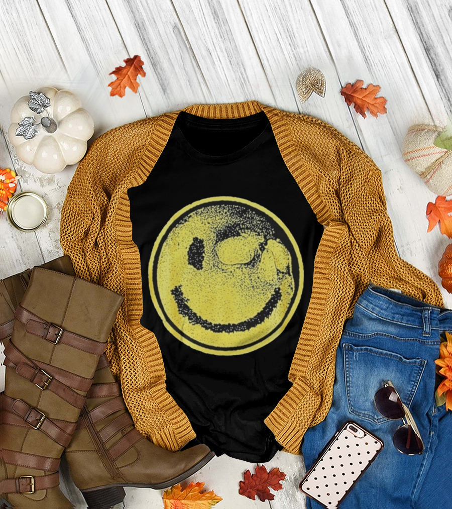 The Against Me! Mandatory Happiness Yellow Smiley Face T-shirt is designed for everyday wear and a consistent fit. Fabric is pre-shrunk ring-spun cotton with durable stitching. See the size chart below for exact measurements.