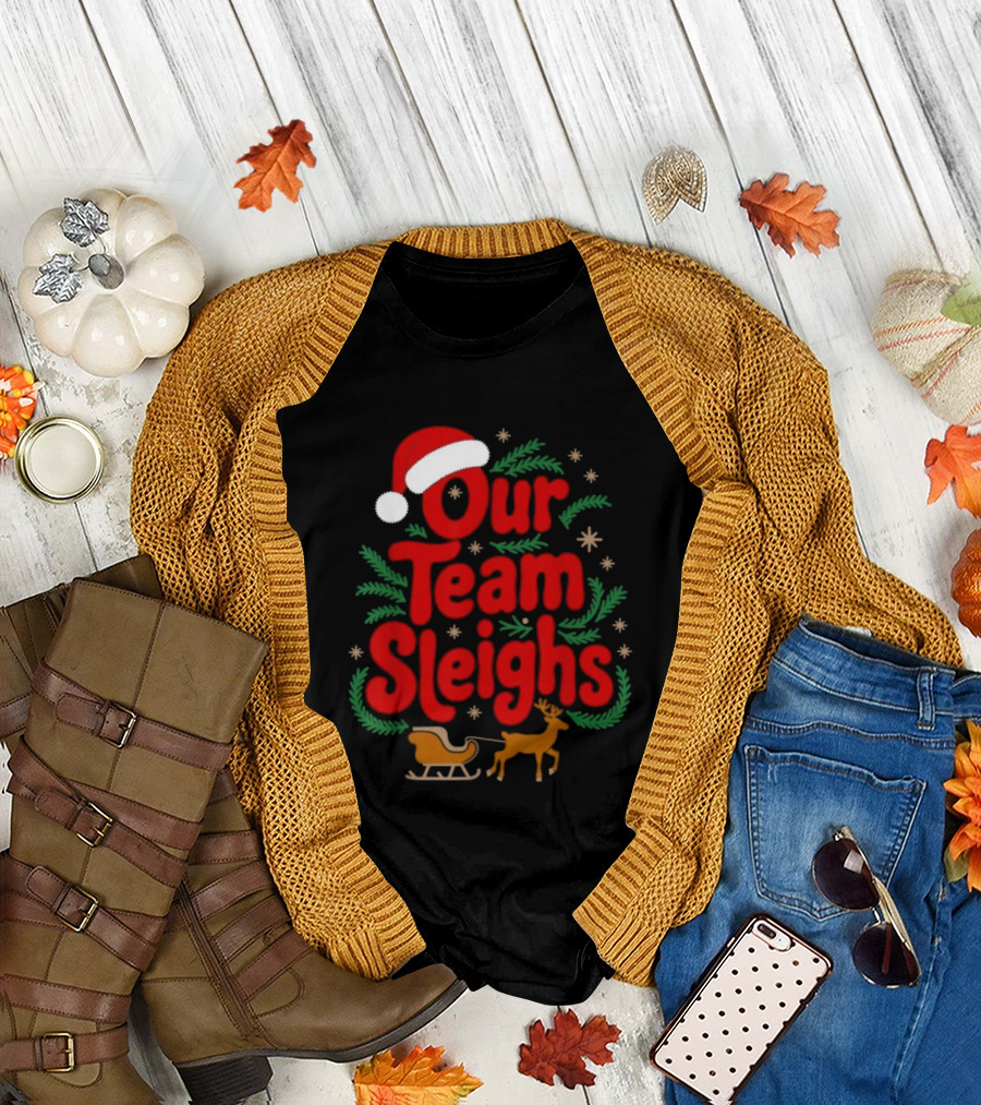 Our Team Sleighs Reindeers Santa Christmas Holiday Spirit T-Shirt