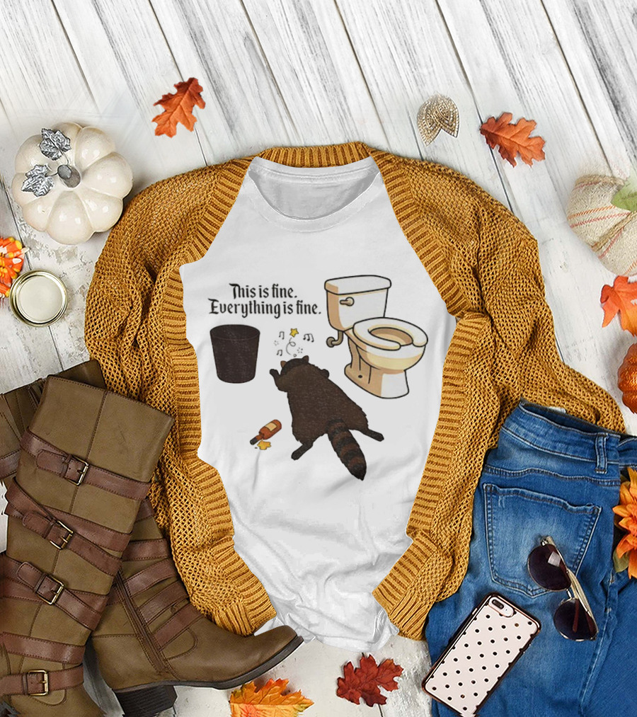 Drunk Raccoon This Is Fine Everything Is Fine Toilet Humor T-Shirt