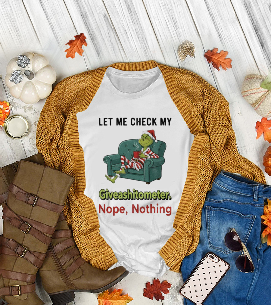 How much will this Grinch Santa Let Me Check My Giveashittometer Nope Nothing Christmas Pajamas shirt shrink?