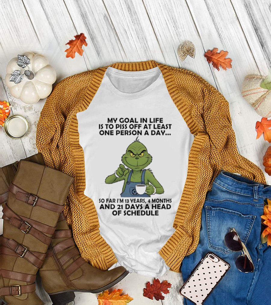 Grinch My Goal In Life Is To Piss Off At Least One Person A Day So Far 13 Years 4 Months 21 Days Ahead Of Schedule T-Shirt