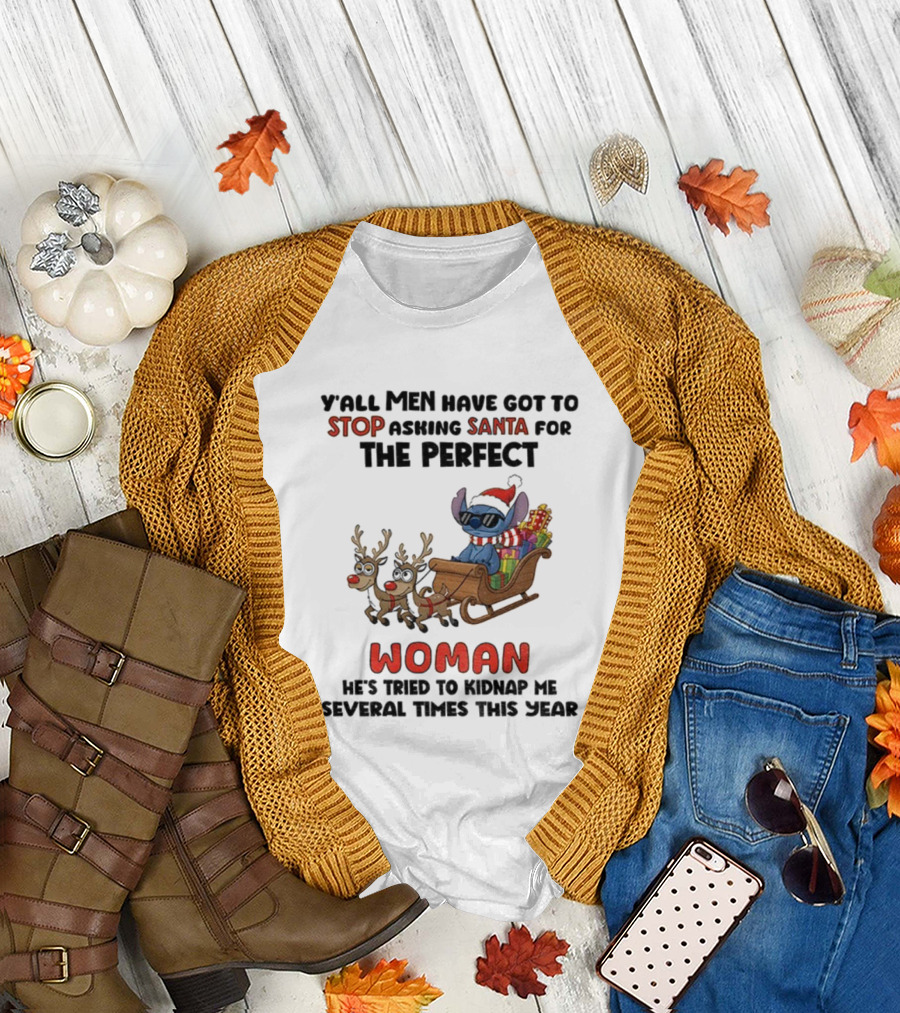 Y'all Men Have Got To Stop Asking Santa For The Perfect Woman Stitch Christmas T-Shirt