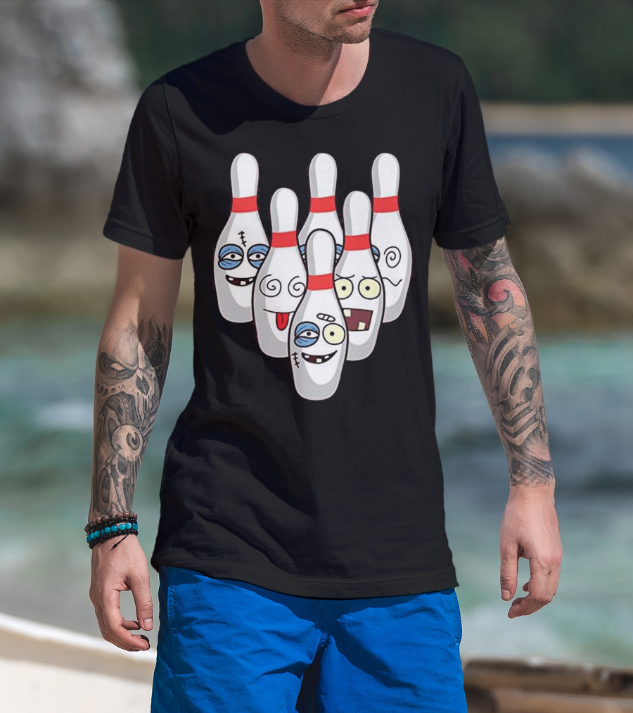 Beat Up Bowling Pins Cute Duckpins Funny Faces T-Shirt