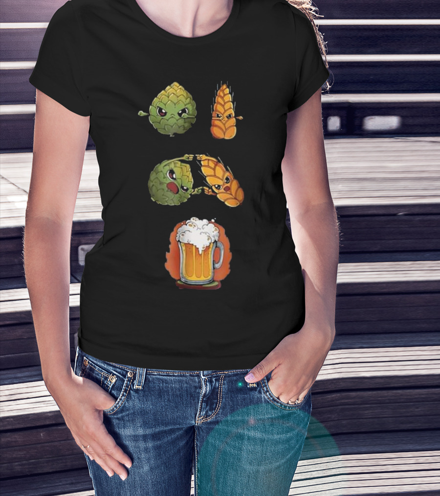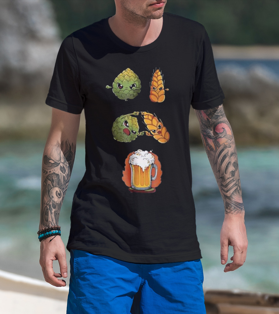 Hops And Barley Fusion Creating Cartoon Beer Mug T-Shirt