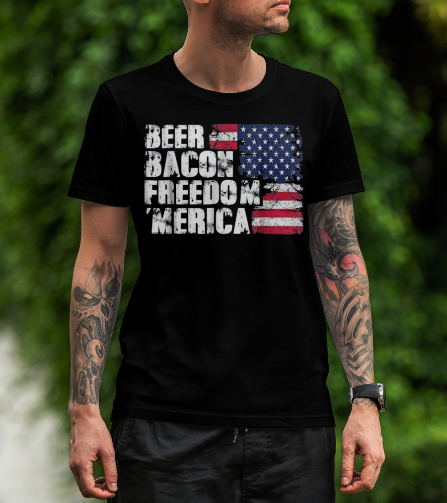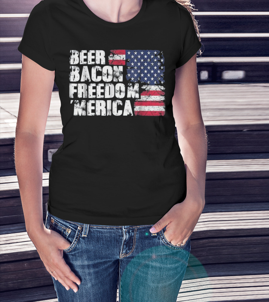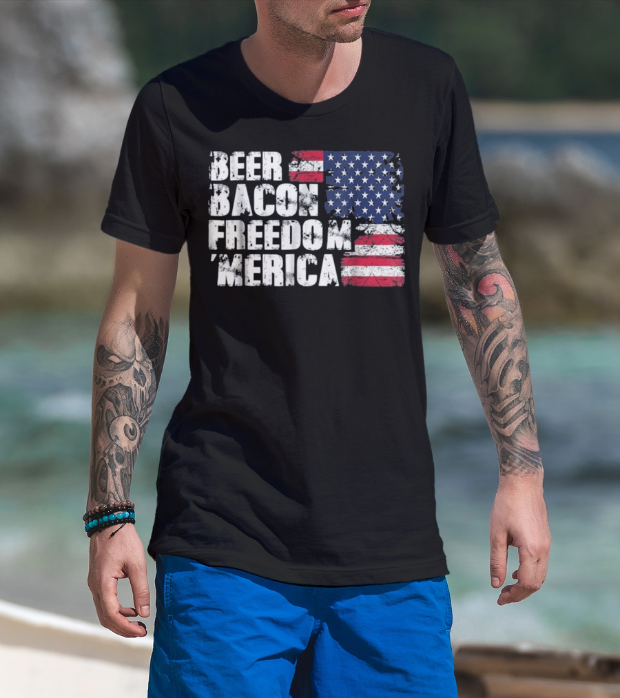 Beer Bacon Freedom Merica American Flag Patriotic T-Shirt