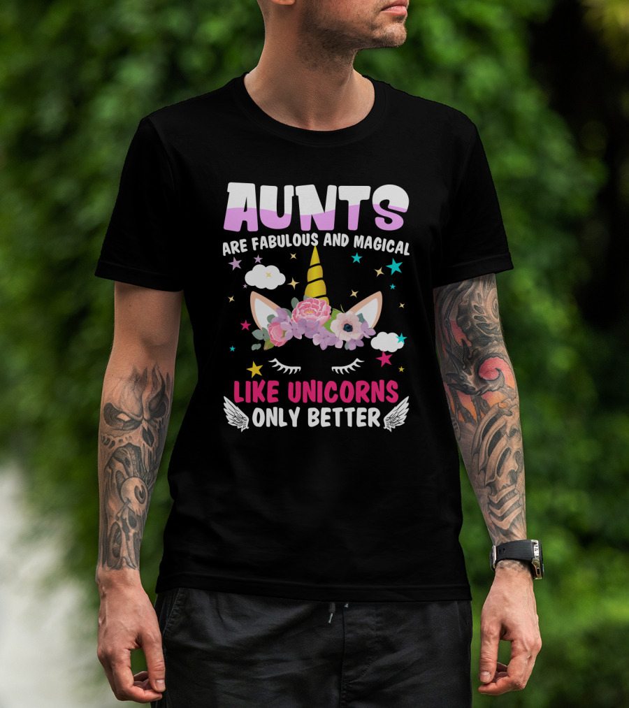 Aunts Are Fabulous And Magical Like Unicorns Only Better With Floral Crown And Stars T-Shirt