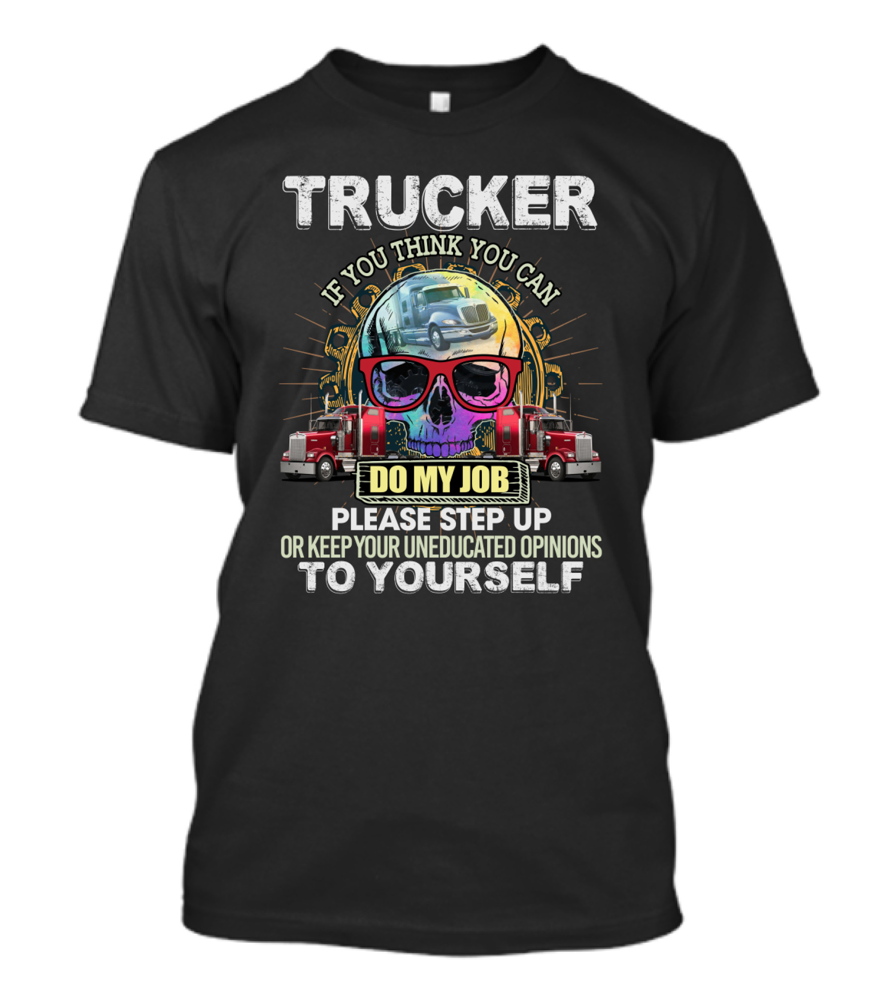 Trucker If You Think You Can Do My Job Keep Your Uneducated Opinions To Yourself Funny Sarcasm Skull Trucks T-Shirt