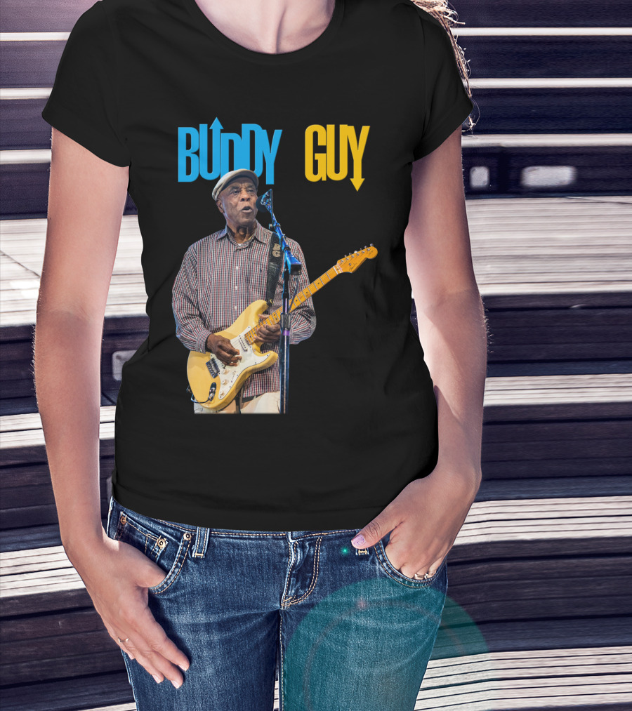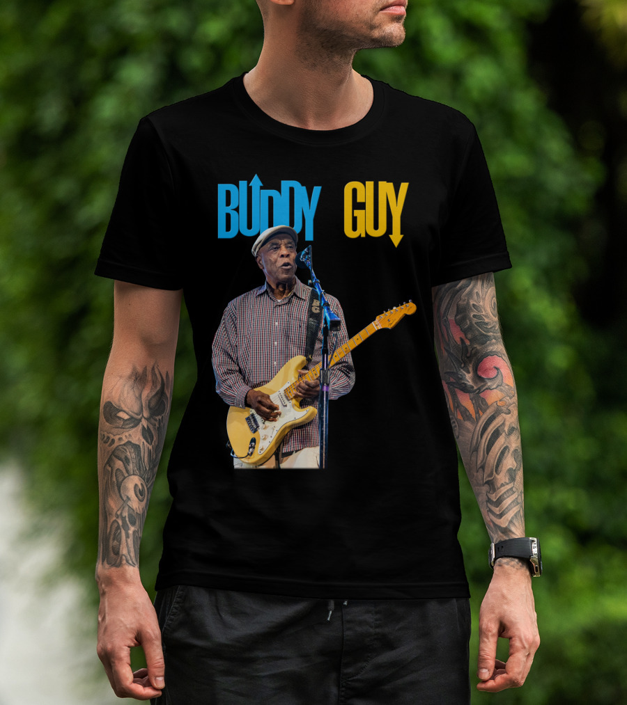 The Buddy Guy Electric Blues Performance With Guitar and Microphone T-shirt is designed for everyday wear and a consistent fit. Fabric is pre-shrunk ring-spun cotton with durable stitching. See the size chart below for exact measurements.