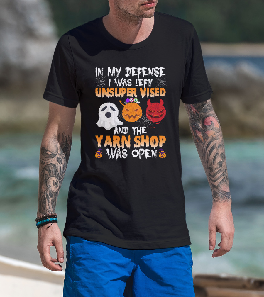 In My Defense I Was Left Unsupervised And The Yarn Shop Was Open Ghost Pumpkin Devil Halloween T-Shirt