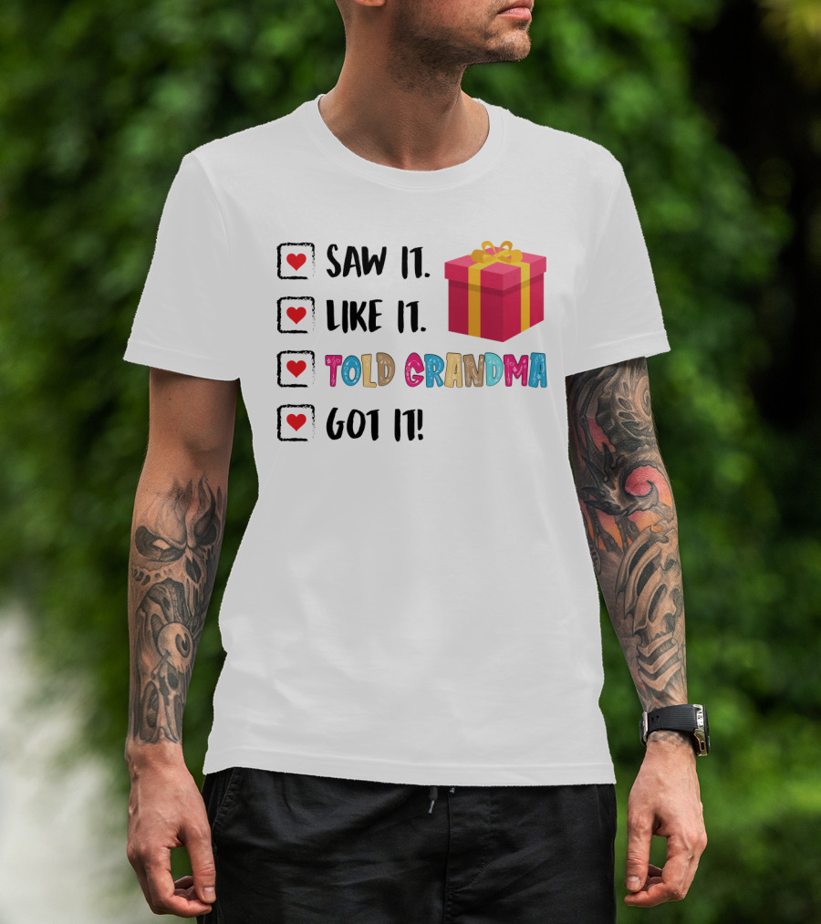 Saw It Like It Told Grandma Got It With Gift Icon And Heart Checkboxes T-Shirt